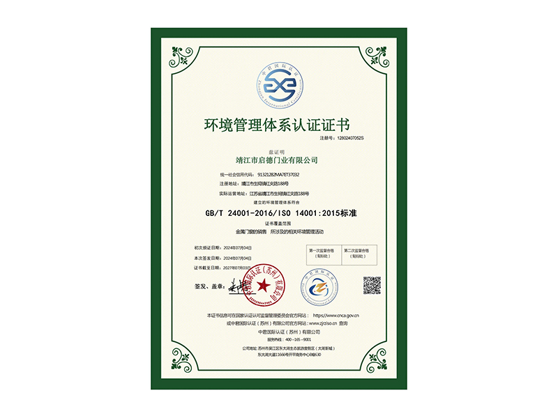 • 環境管理體系認證證書